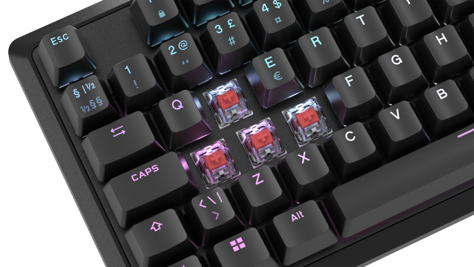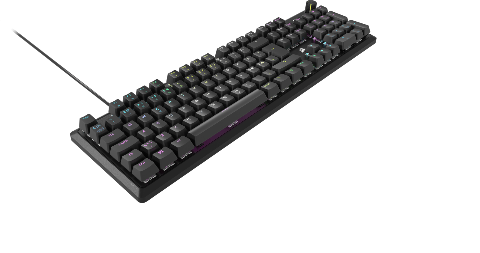 Med Corsair Red linjära switchar och två lager av dämpande skum har tangentbordet supersnabb och silkeslen input.
