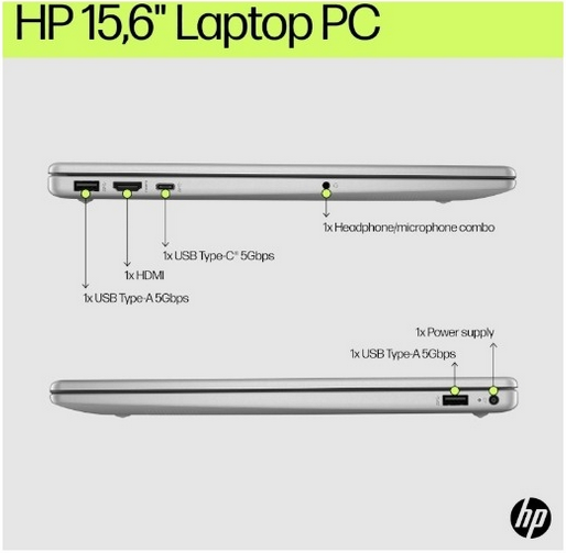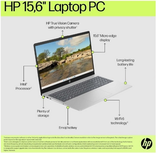 15,6" HP 15-fd0411no, TN HD, Intel i3 N305 3,8 Ghz, Win11S, 8 Gb, 128 Gb SSD NVMe, UHD Graphics, Wi-Fi 6, BT, Silver
