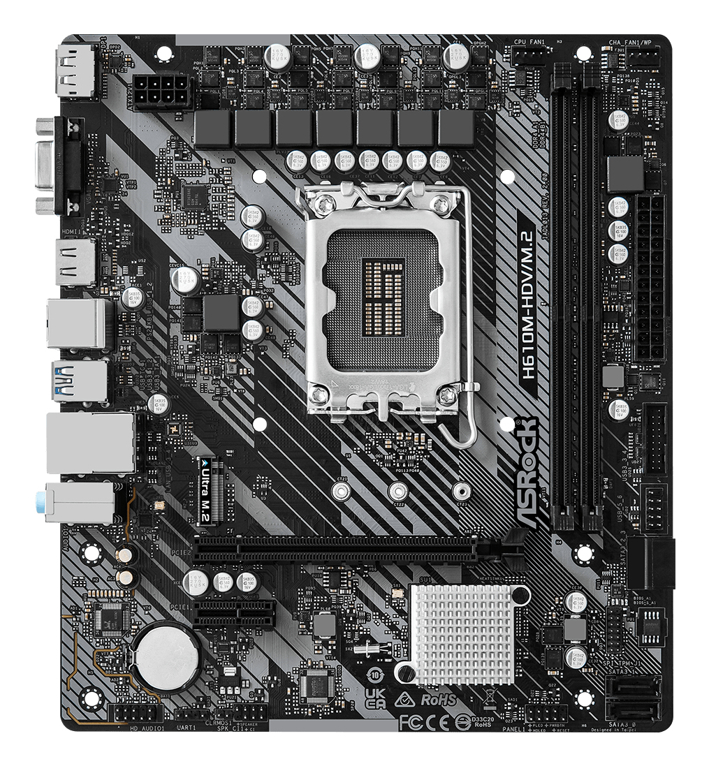 Asrock H610M-HDV/M.2 R2.0, Intel LGA1700, PCI Express, MicroATX, 2xDDR4, M.2 + SATA3, VGA/HDMI/DP, USB 3.2, GigaLAN