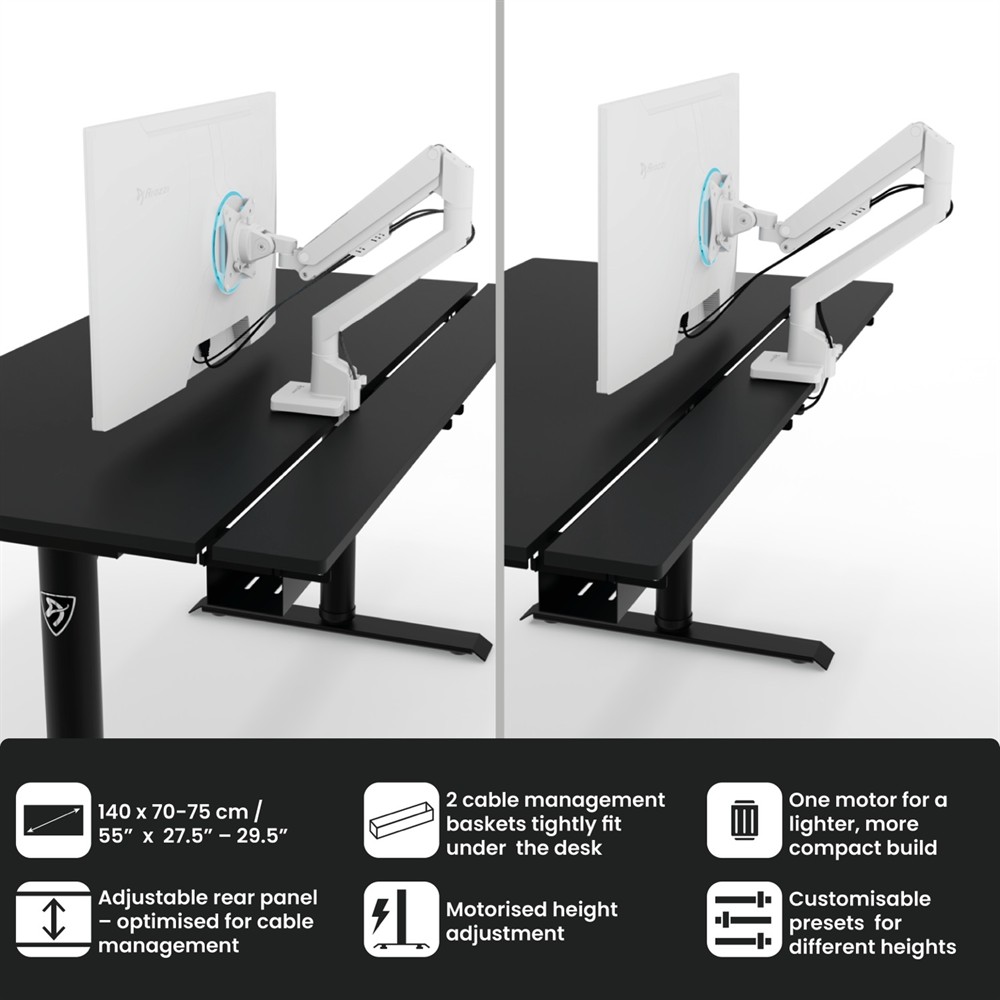 • Metal cable baskets: Two included baskets mount under the desk with smart, quick-release brackets.