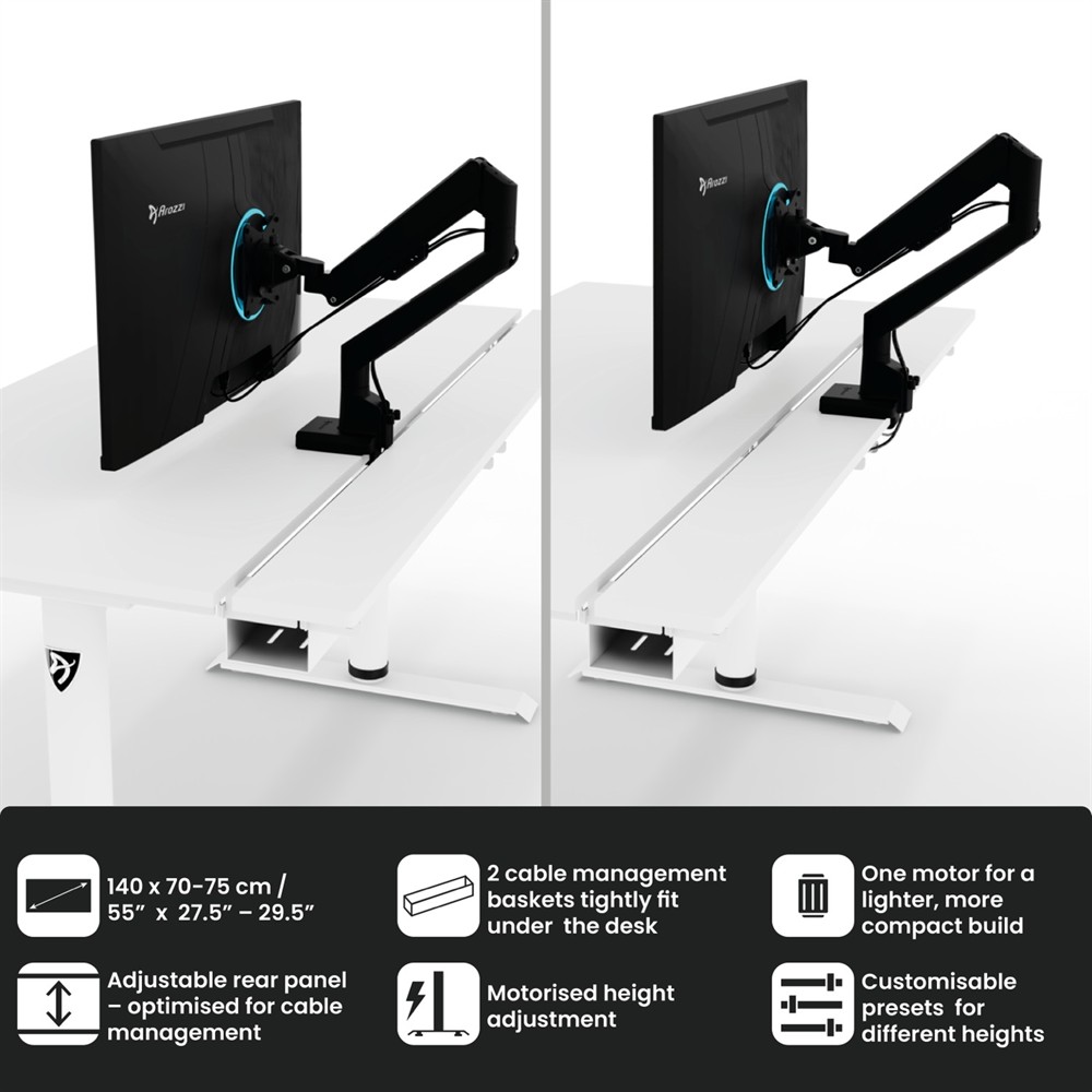Arozzi Arena Nordico, elektriskt justerbart 71-115 cm - Vit