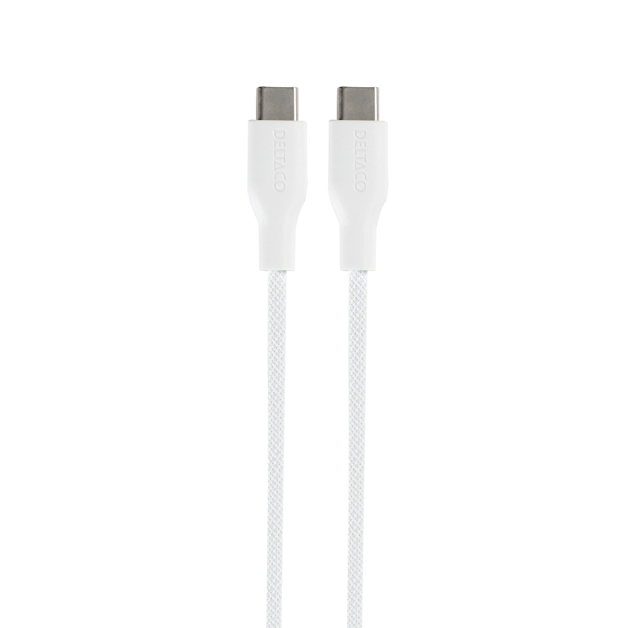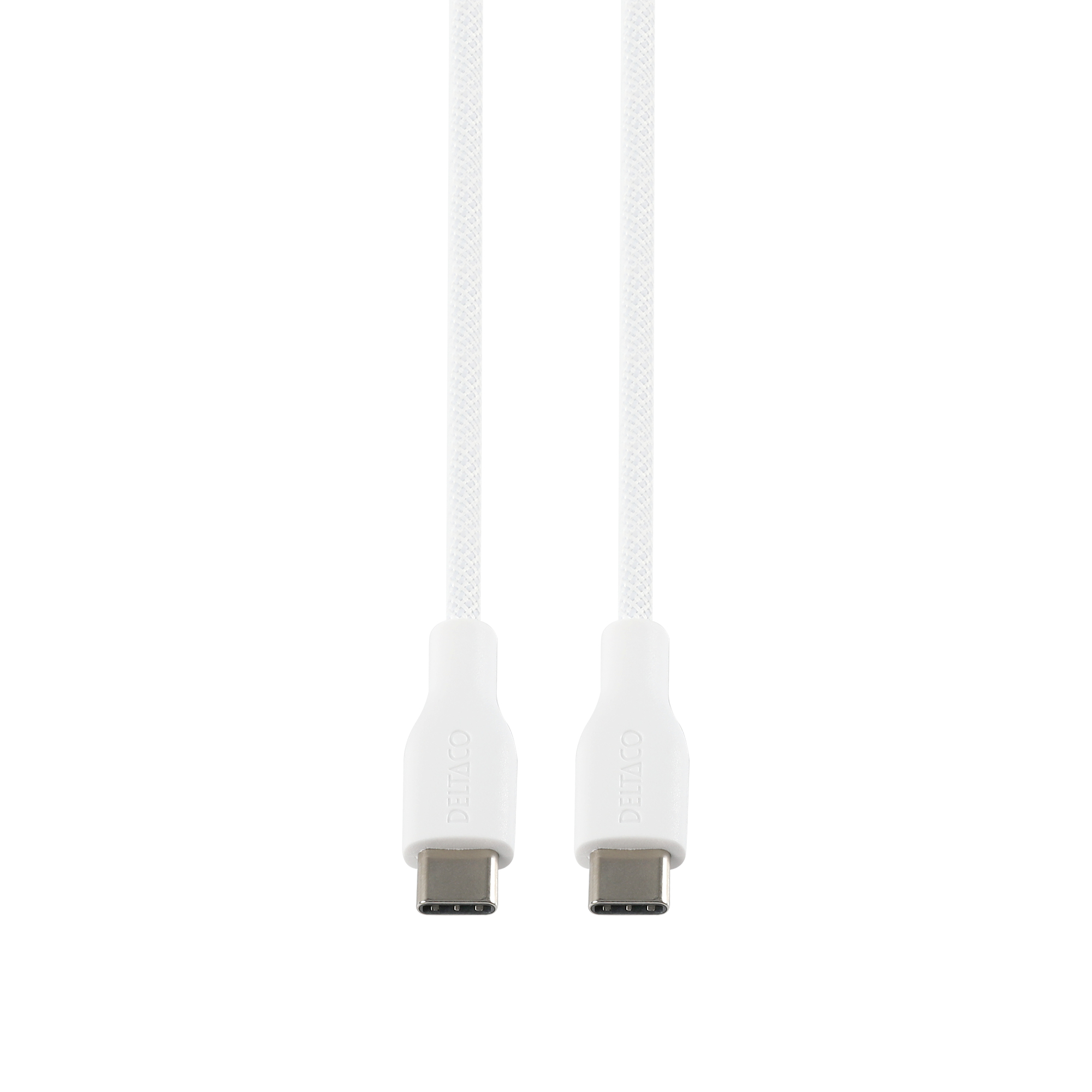 Deltaco USB-C - C, 2m, USB 2.0, white braided 3A/60W - Vit