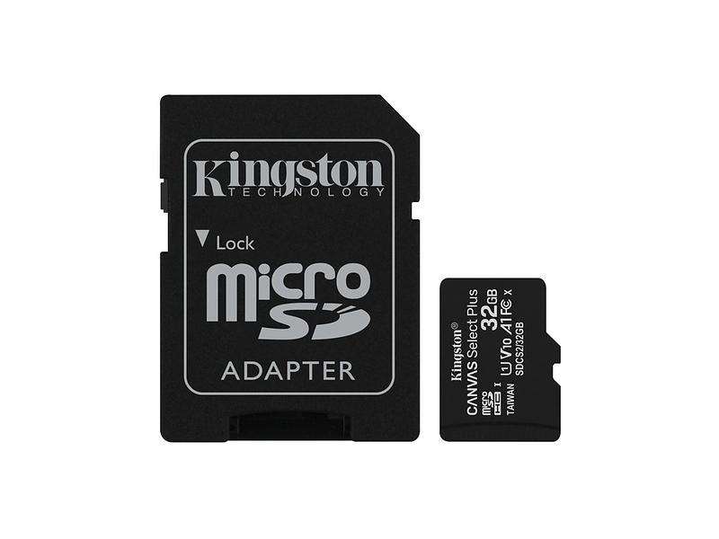 Micro Secure Digital SDHC 32 GB Kingston Canvas Select Plus, 100 MB/sek läs, Class 10, A1, UHS-I U1, inkl. SD-adapter