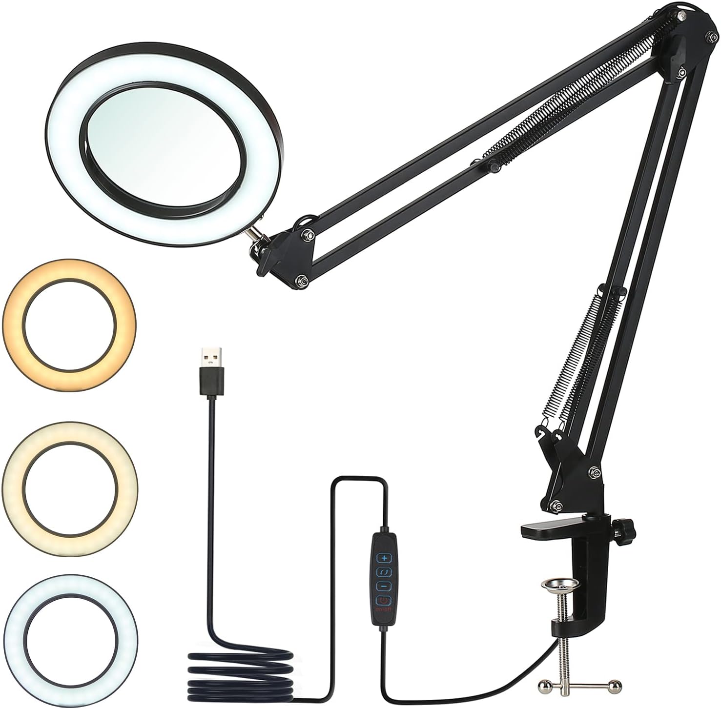Förstoringslampa med metallklämma och svängarm, 8x förstoring - Svart