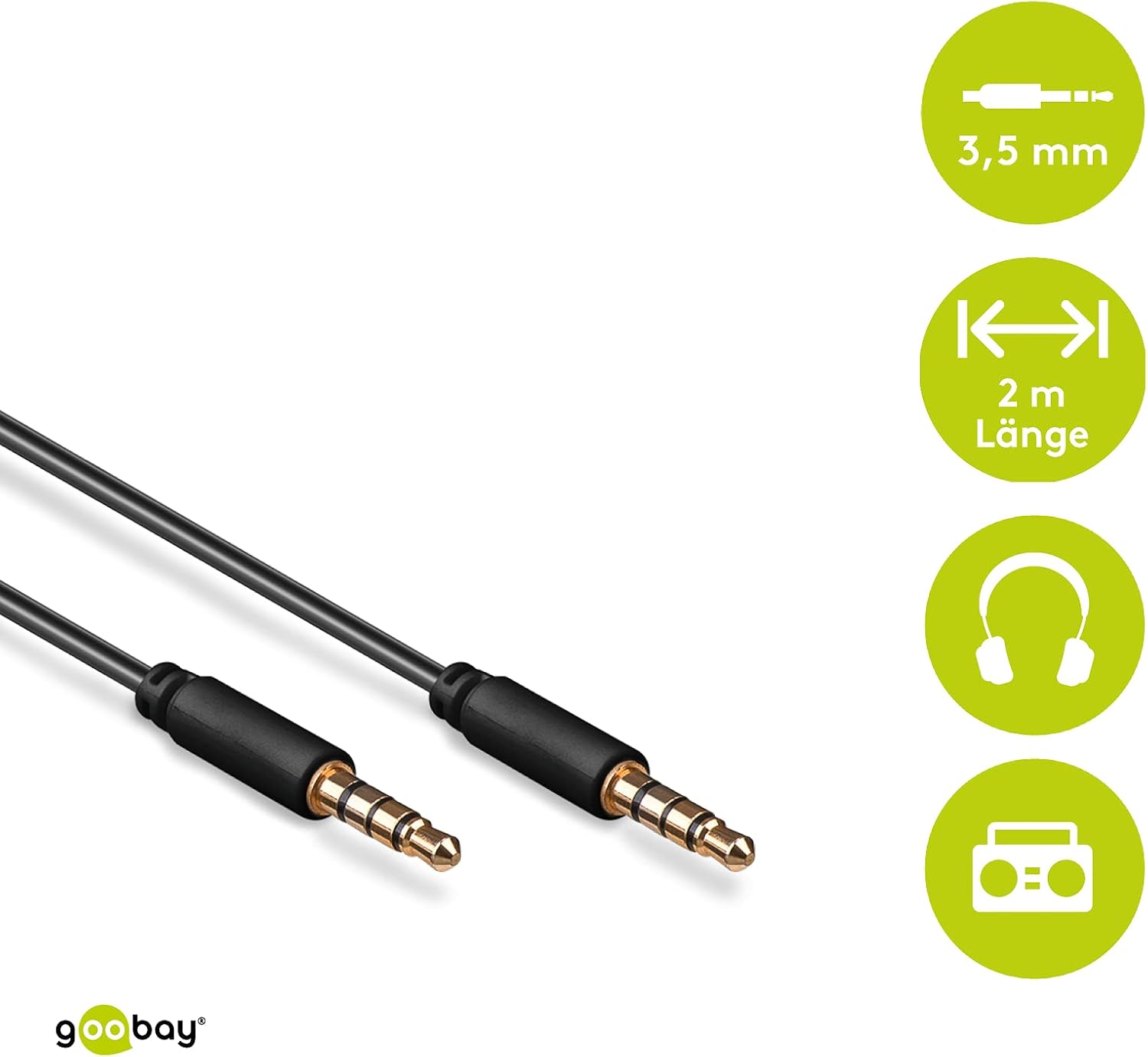 Goobay ljudkabel, 3,5mm 4-pin ha - ha, 2 meter - Svart