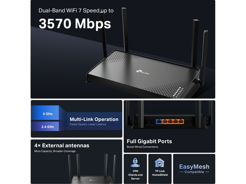 TP-Link Archer BE220 router BE3600,- dual-band, 4xlan, WiFi 7