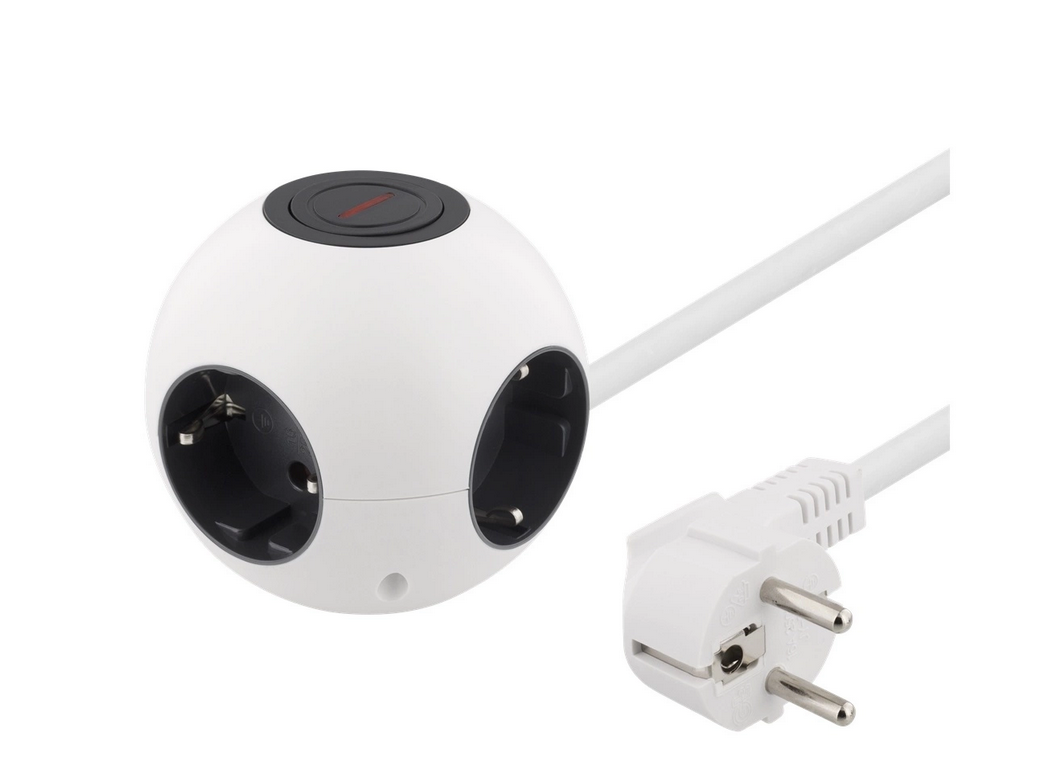 DELTACO Kulformat grenuttag med switch, 4xCEE 7/4, 1xCEE 7/7, vit