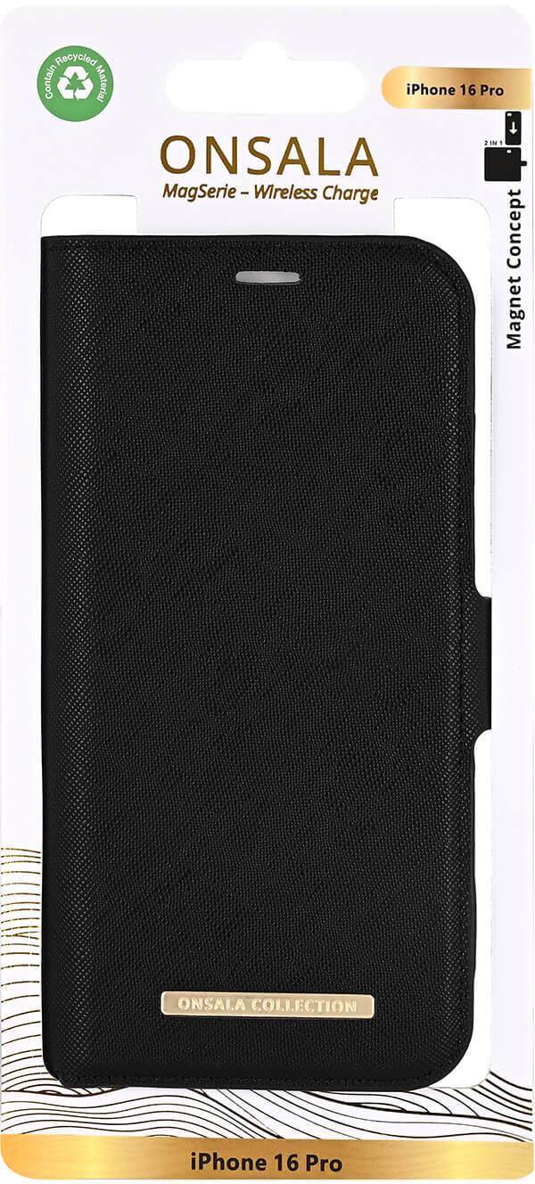Plånboksfodral ONSALA Eco Wallet 2 card Recycled MagSeries iPhone 16 Pro - Svart