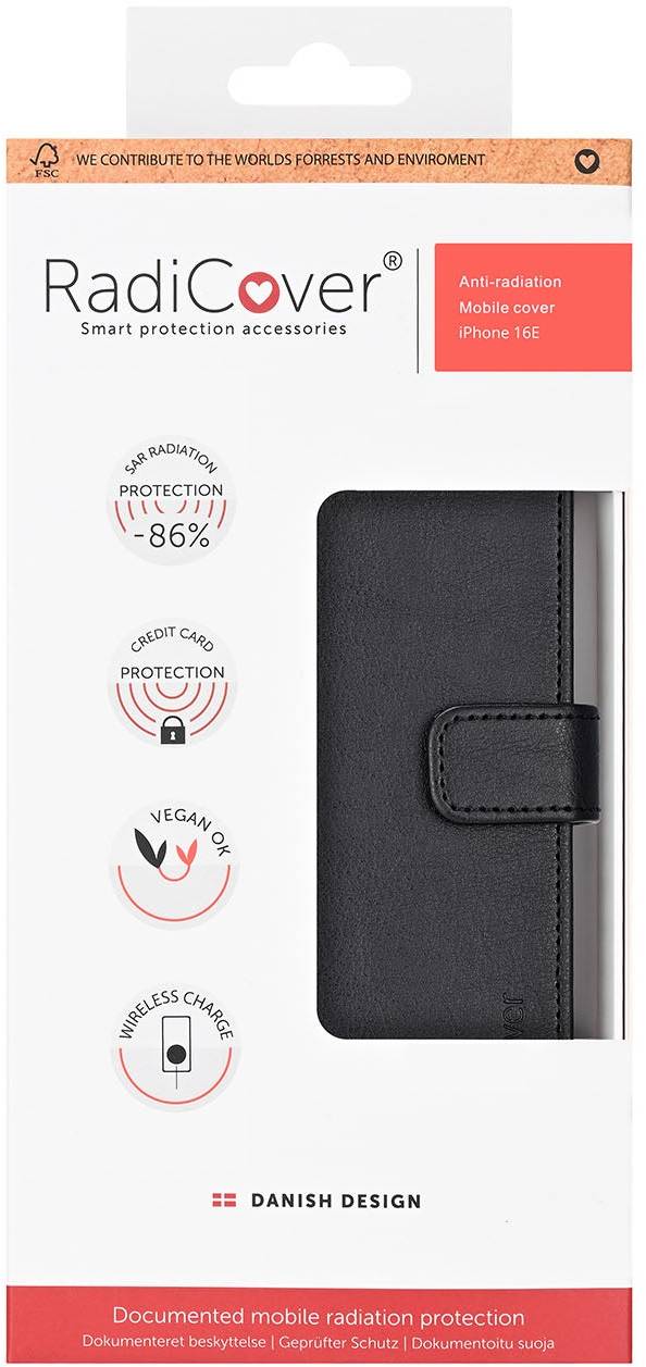 Plånboksfodral RadiCover RFID iPhone 16e, 3 st kortfack + sedelficka, MagSerie - Svart