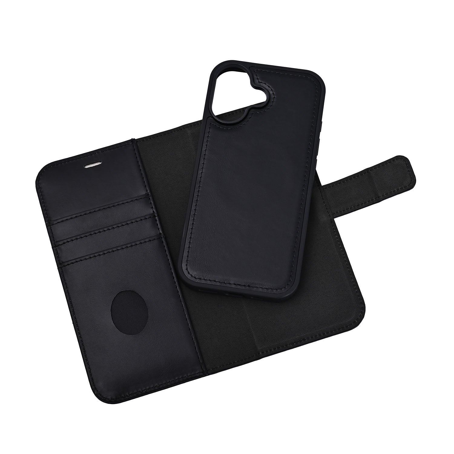Plånboksfodral RadiCover RFID iPhone 17, läder, 3 st kortfack + sedelficka, MagSerie - Svart