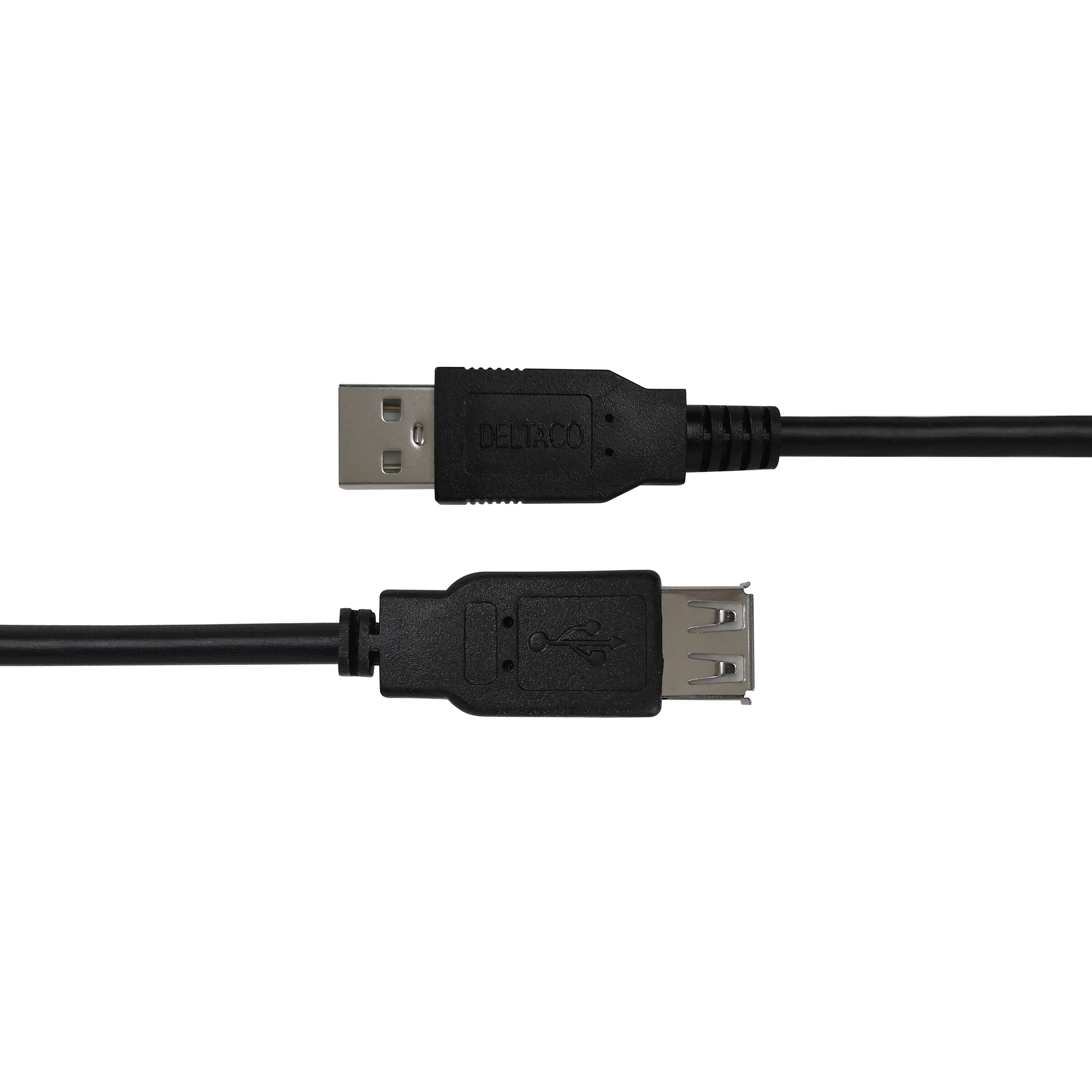 Deltaco USB extension cable, USB-A male - USB-A female, 3m -Svart