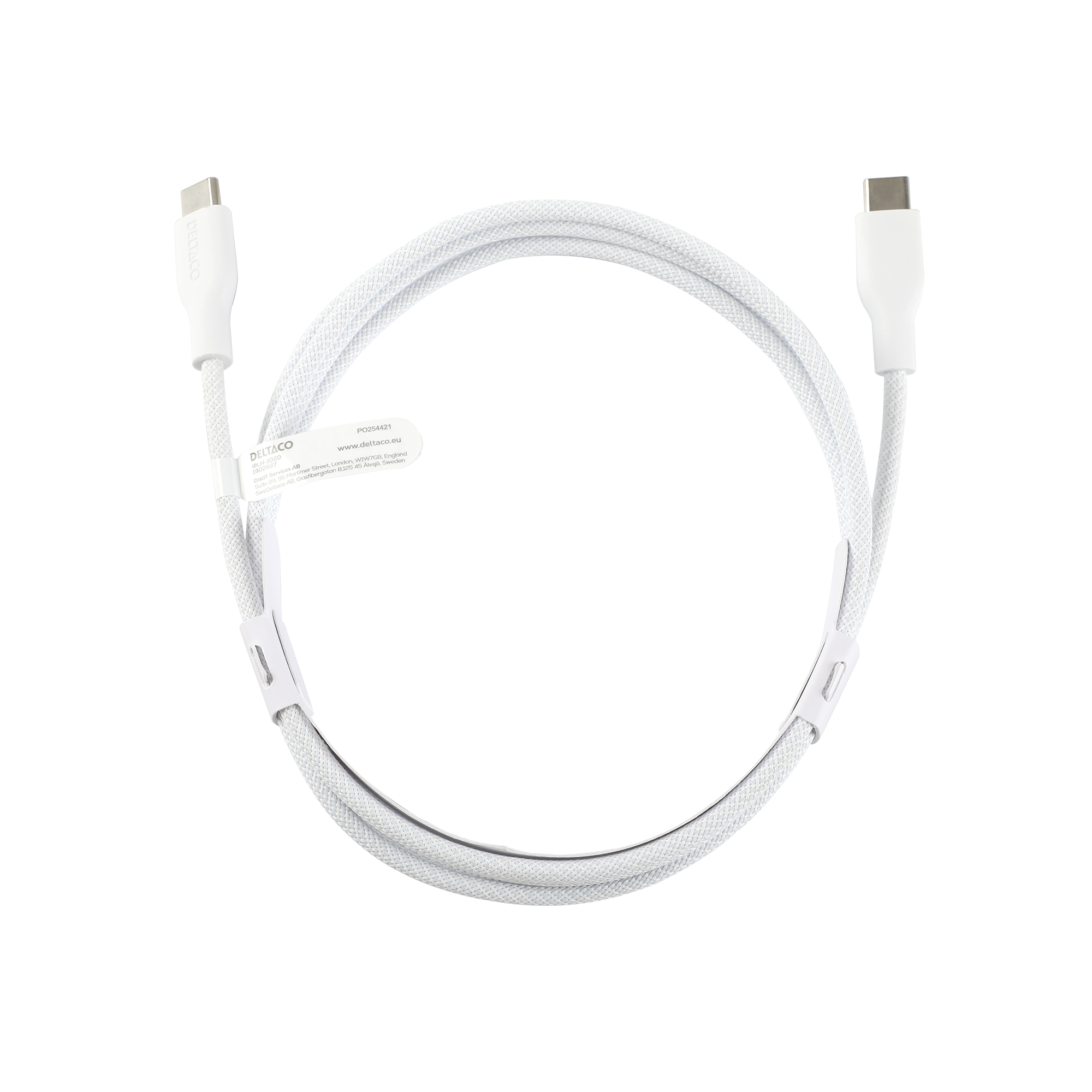 Deltaco USB-C - C, 2m, USB 2.0, white braided 3A/60W - Vit
