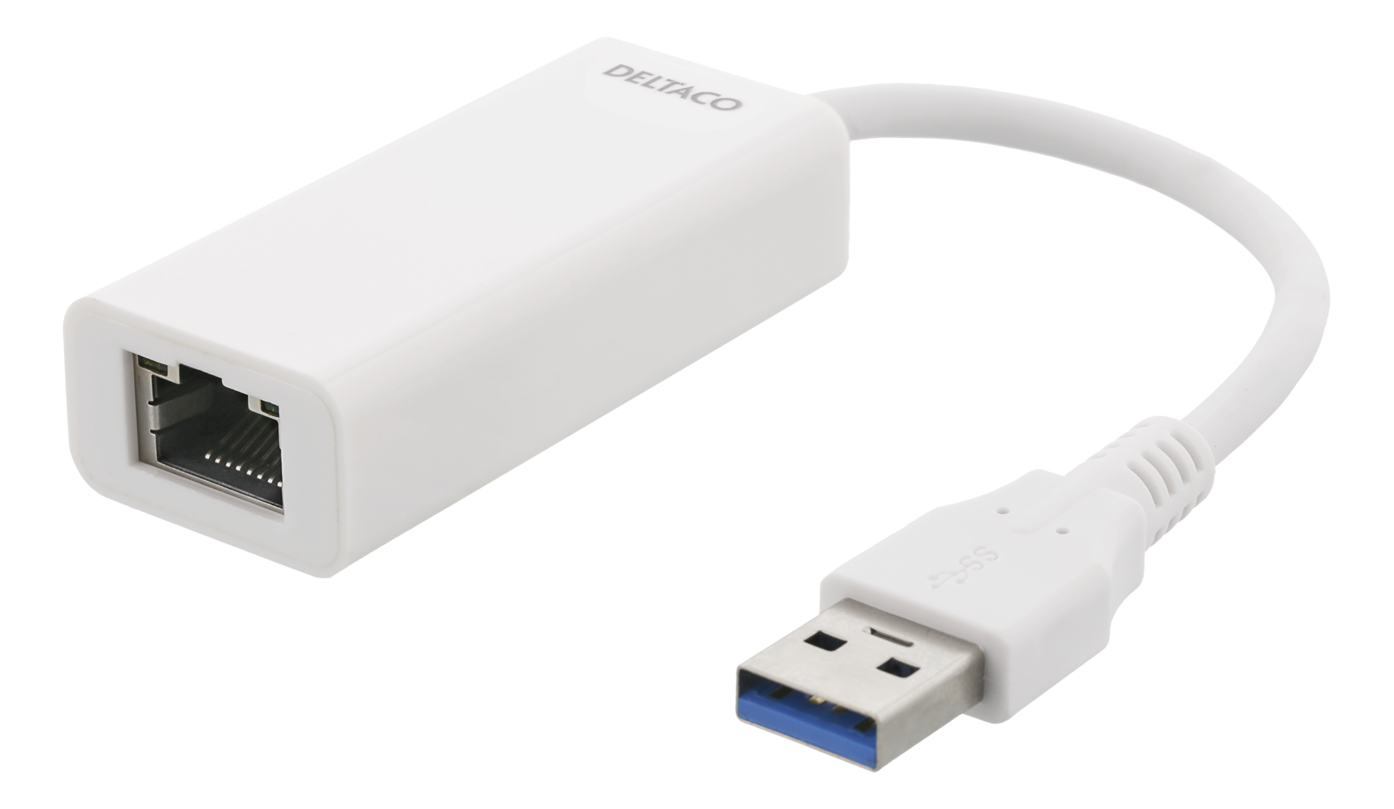 Adapter Deltaco, USB-A till Gigabit/RJ45 - Vit