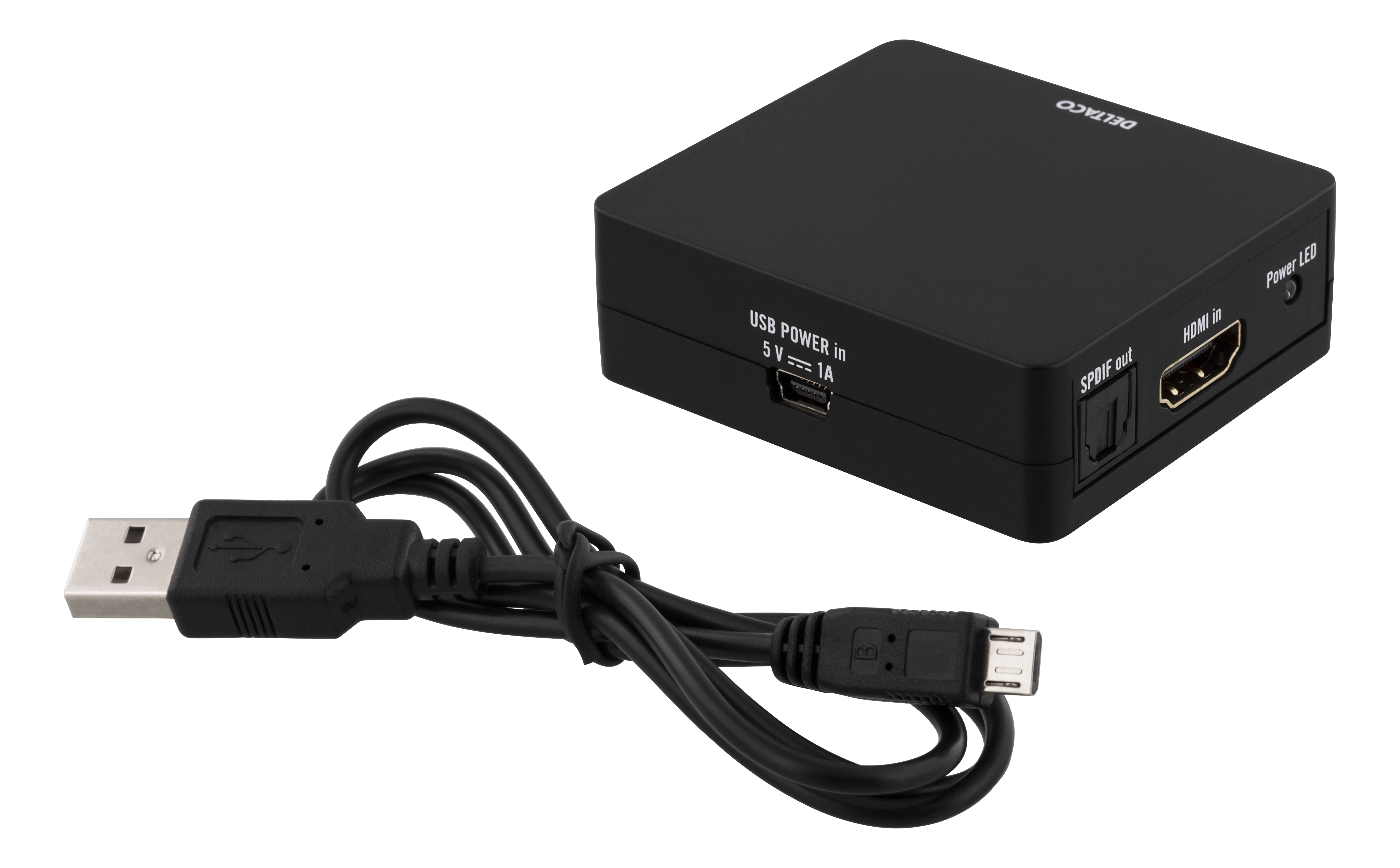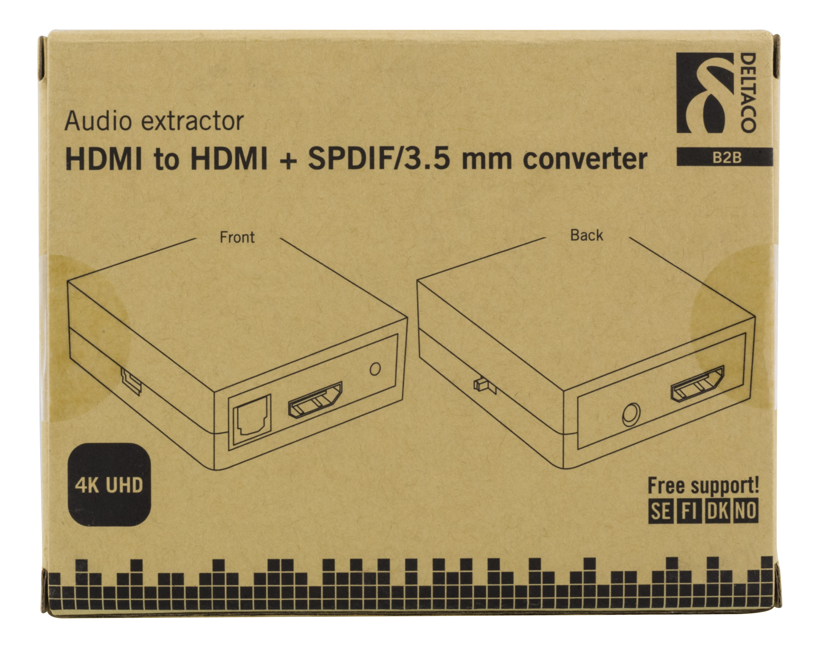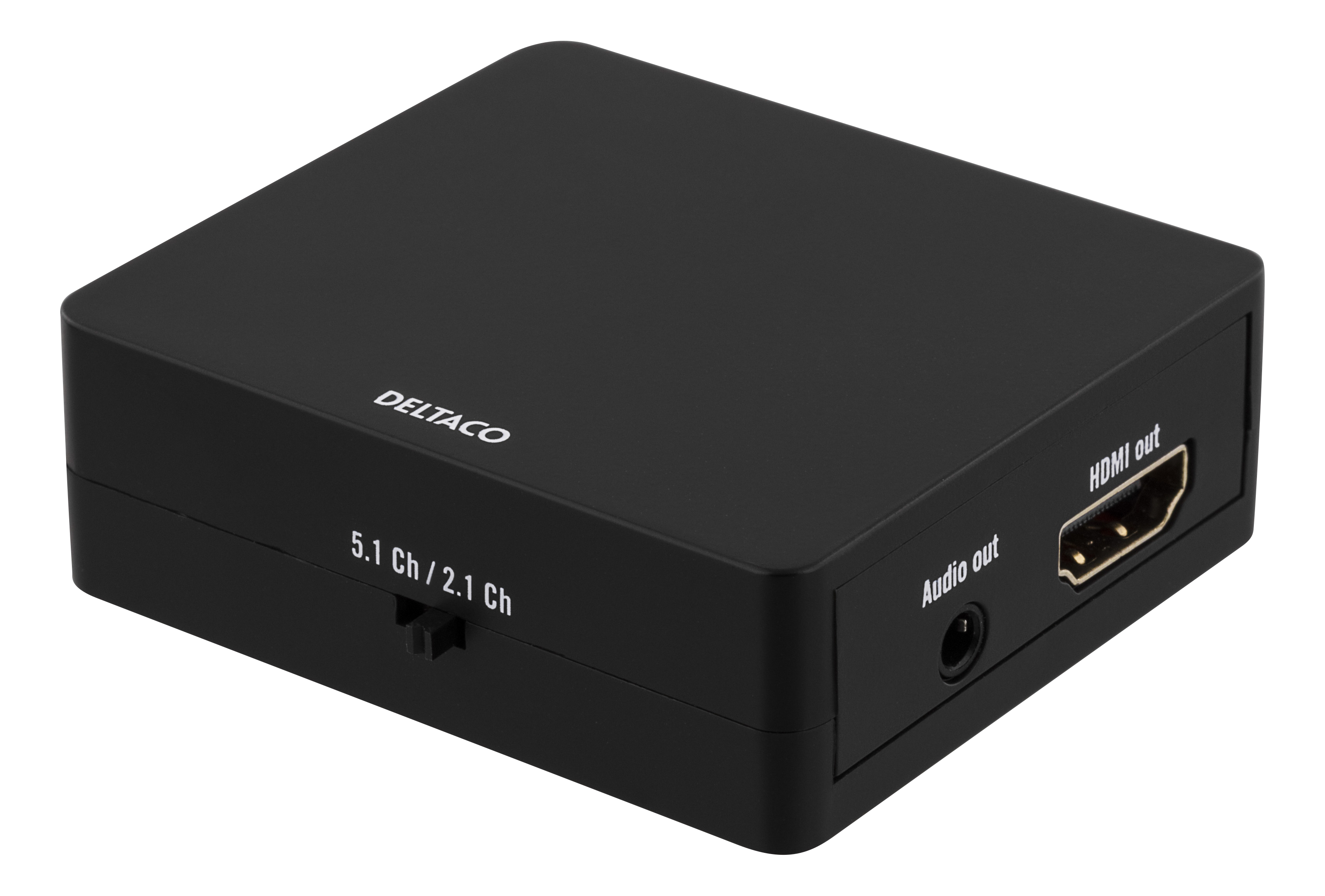 DELTACO HDMI till HDMI +SPDIF/3,5mm minitele omvandlare, Ultra HD i 30Hz, 5.1/2.1 kanals ljud, ABS plast, svart
